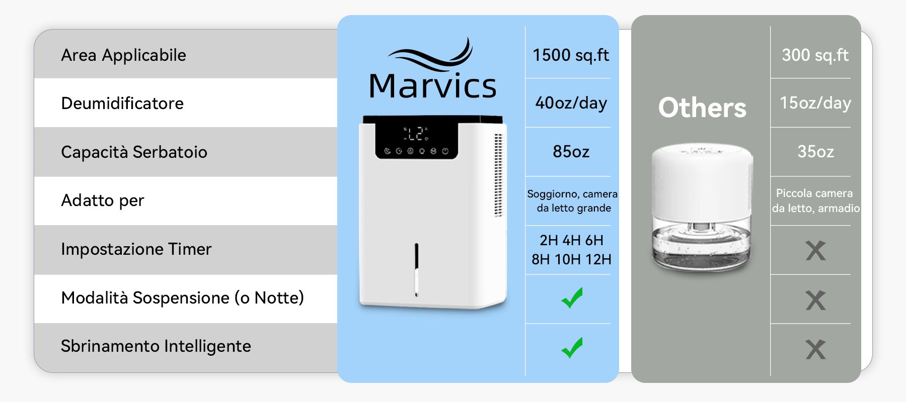 - Deumidificazione Potente - La tecnologia dual-core elimina rapidamente l'aria viziata, garantendo aria più fresca.